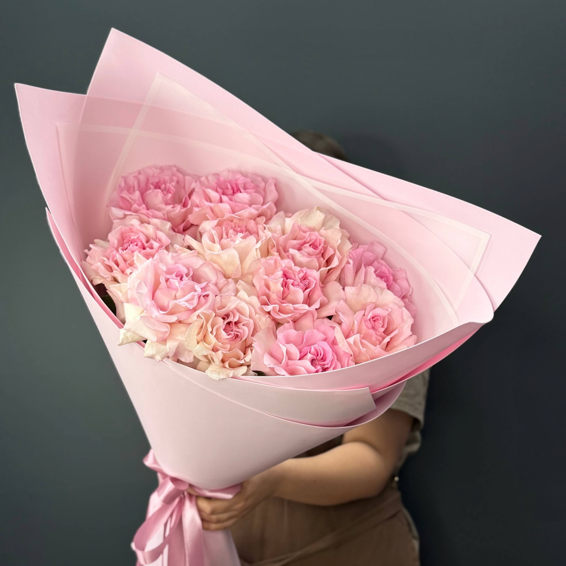 Букет-гигант из розовых французских роз