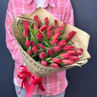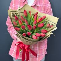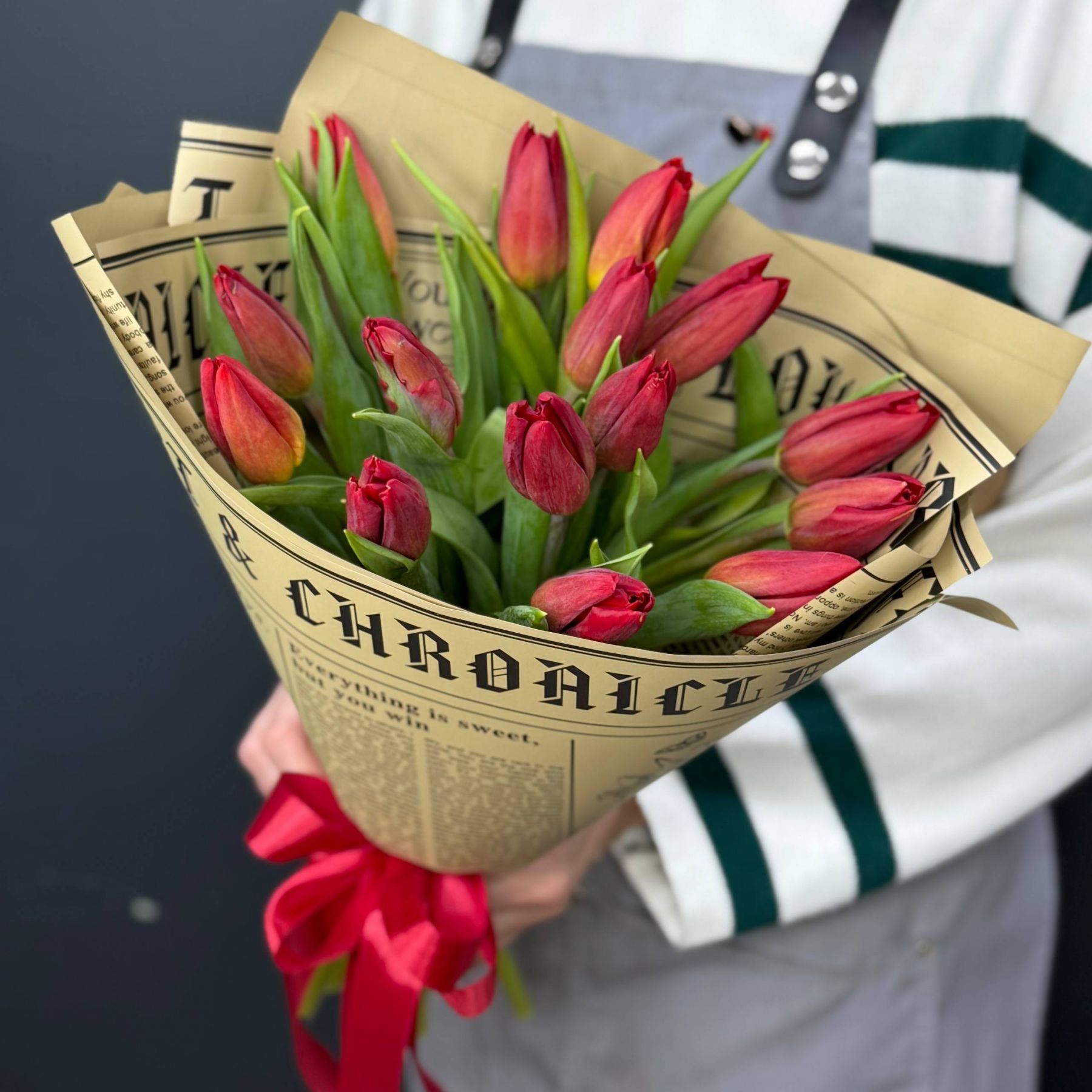 Букет из красных тюльпанов Голандия. Роскошный подарок, если Вы идете на день рождения или юбилей. Хороший способ признаться в любви или напомнить о своей любви. Отличный букет для жены, для мамы, для любимой девушки.
