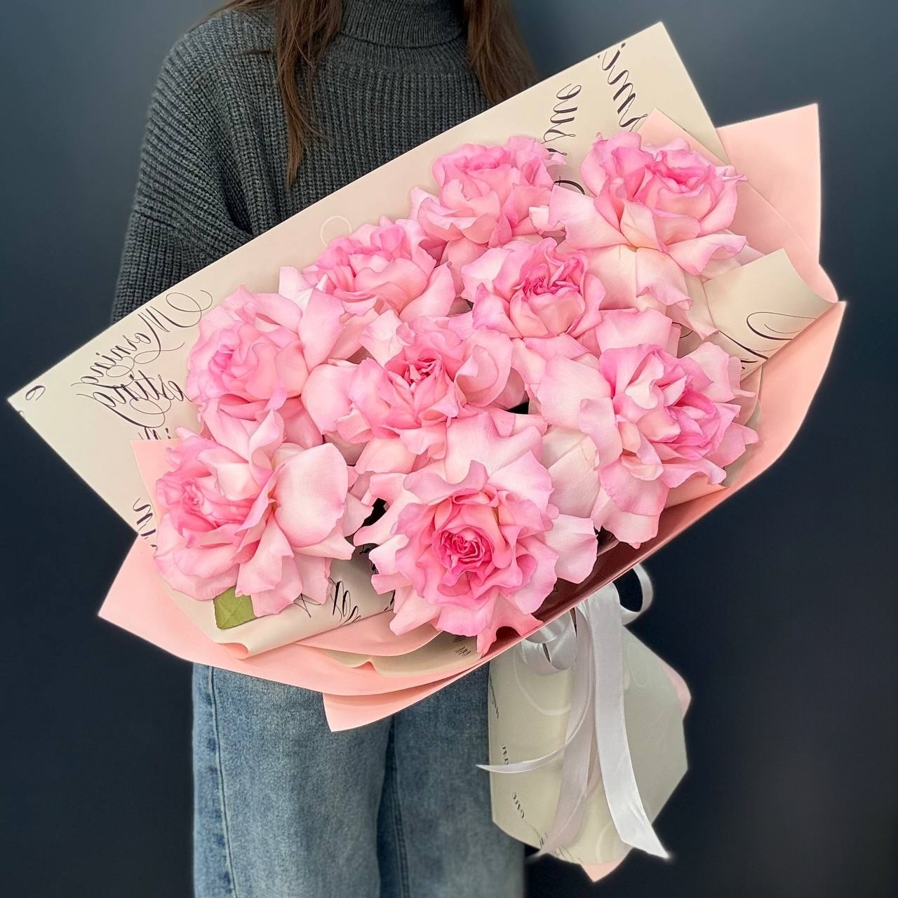 Воздушный букет из розовых французских роз